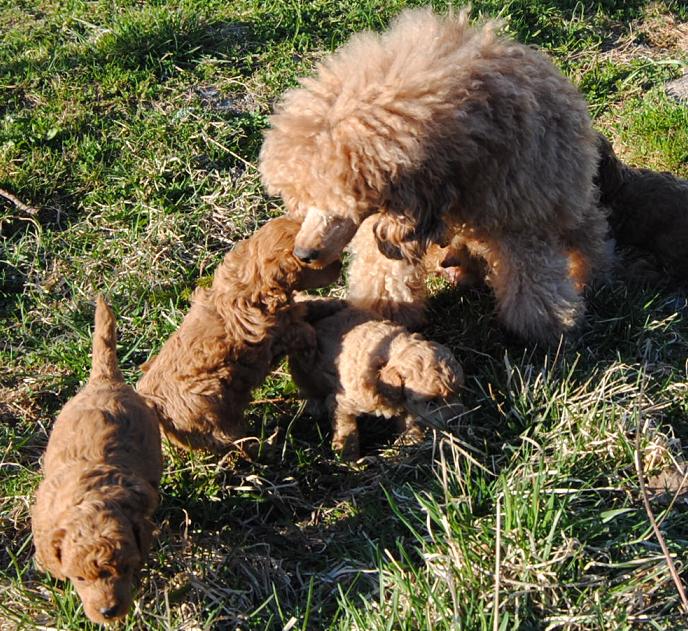 Den 28/12 föddes det fyra stycken röda toy/dvärgpudel valpar (2+2), som söker ny egna hem.